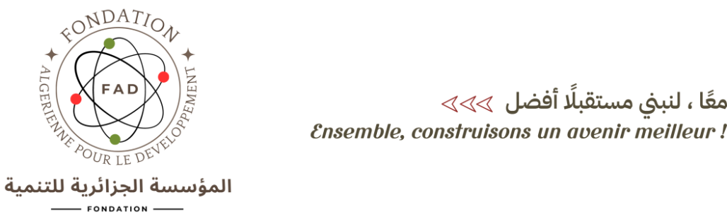 Bienvenue sur le site officiel de la Fondation Algérienne pour le Développement (FAD) qui a pour mission de promouvoir l'entrepreneuriat, de soutenir les initiatives locales, d'aider à la réalisation de projets stratégiques, de préserver la culture et de stimuler l'innovation technologique.